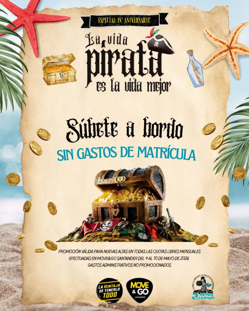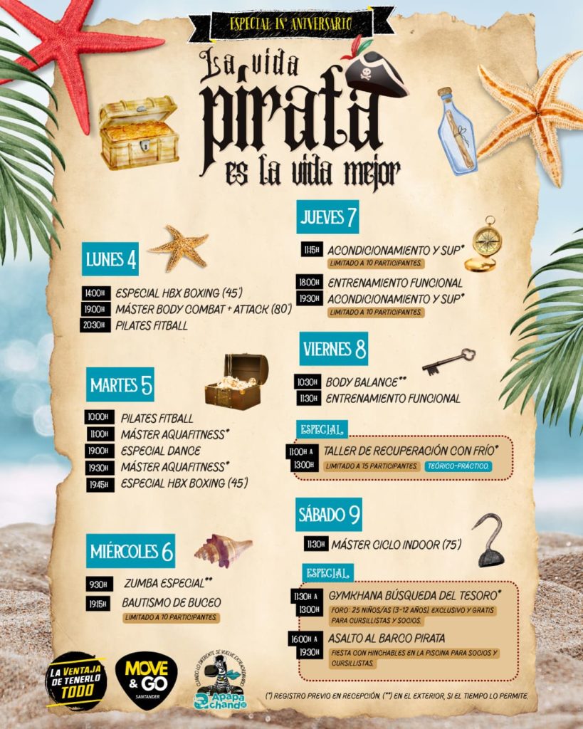 El centro deportivo Move&Go Santander cumple, en 2026, su mayoría de edad. Para celebrar su 18º aniversario ha programado una serie de actividades para todos los públicos del lunes 4 al sábado 9 de mayo, bajo temática de fiesta pirata, que resumimos a continuación.