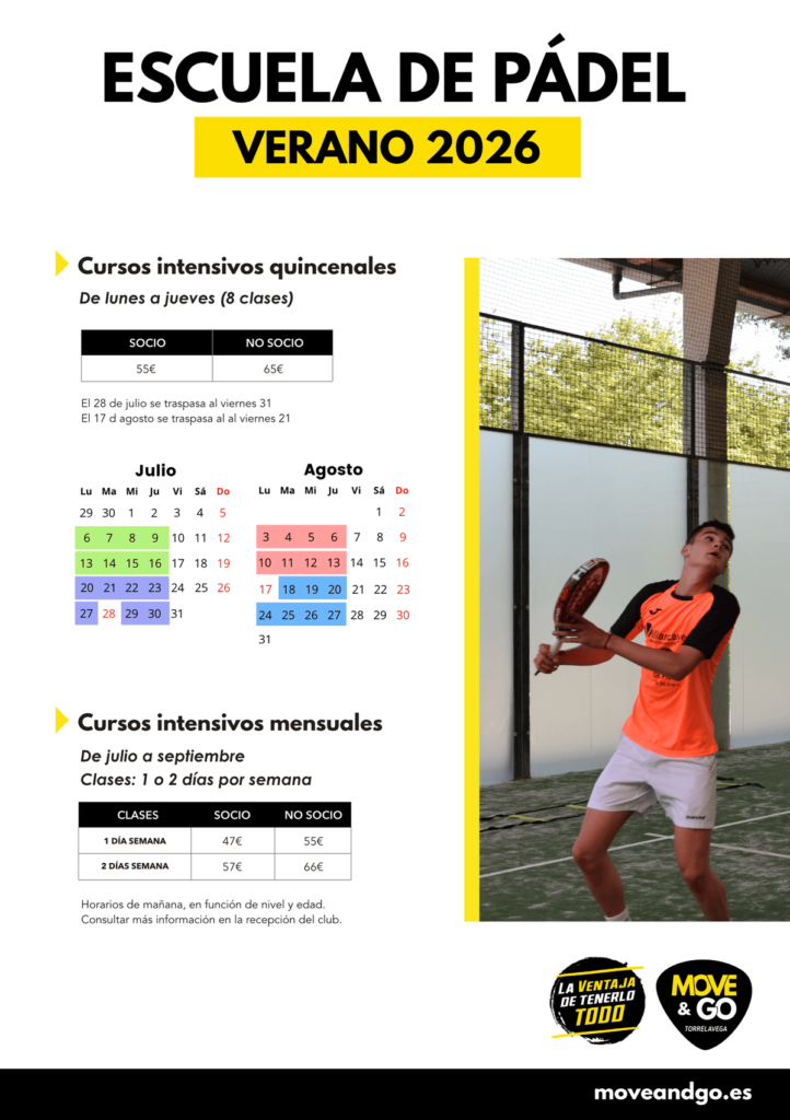 Este verano, en Move&Go Torrelavega lanzamos una nueva edición de la Escuela de Pádel Infantil Verano 2026, una propuesta ideal para que niños y jóvenes descubran este deporte o mejoren su nivel durante las vacaciones.