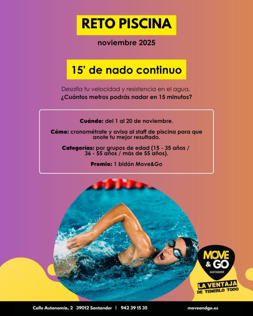 Logra la mejor marca en nuestros retos mensuales de piscina y sala fitness, y consigue premios. En la piscina, te retamos a ser la persona que más metros nade en 15 minutos. Y en sala, a lograr levantar la mancuerna más pesada en una serie de pulso con mancuerna.
