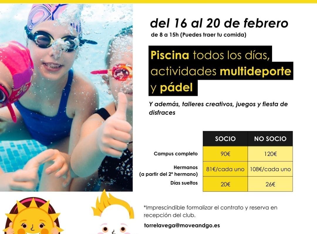 El centro deportivo Move&Go Torrelavega ha programado para la semana del 16 al 20 de febrero de 2026 dos propuestas para facilitar la conciliación de las familias en la semana de Carnaval, sin actividad escolar.